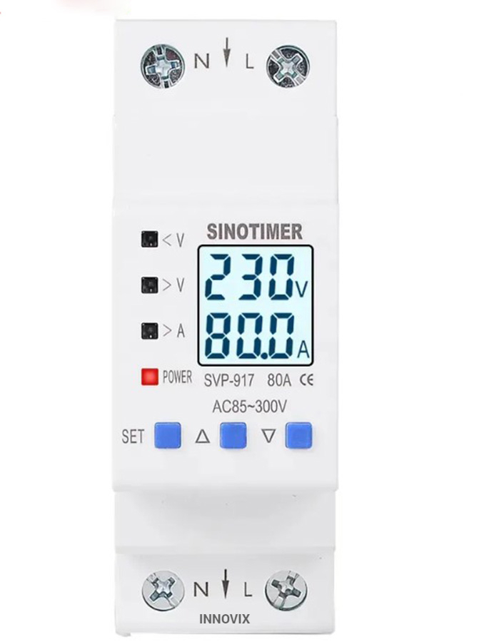 Descoperiti protectia la supracurent SINOTIMER SVP-917 - INNOVIX, un dispozitiv multifunctional conceput pentru a masura energia activa intr-un circuit monofazat cu doua fire, oferind protectie impotriva supratensiunii, subtensiunii si supracurentului. Cu un design robust, realizat din materiale de inalta calitate - metal si plastic, SVP-917 este o investitie durabila ce asigura o functionare stabila in timp.