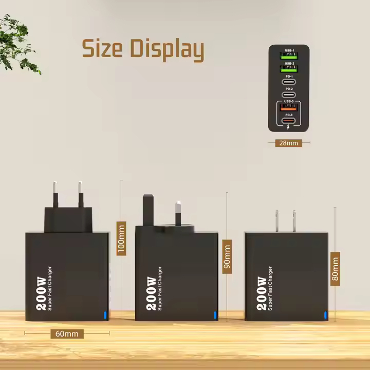 Porturi: 3 x USB-C (PD), 3 x USB-A (QC)